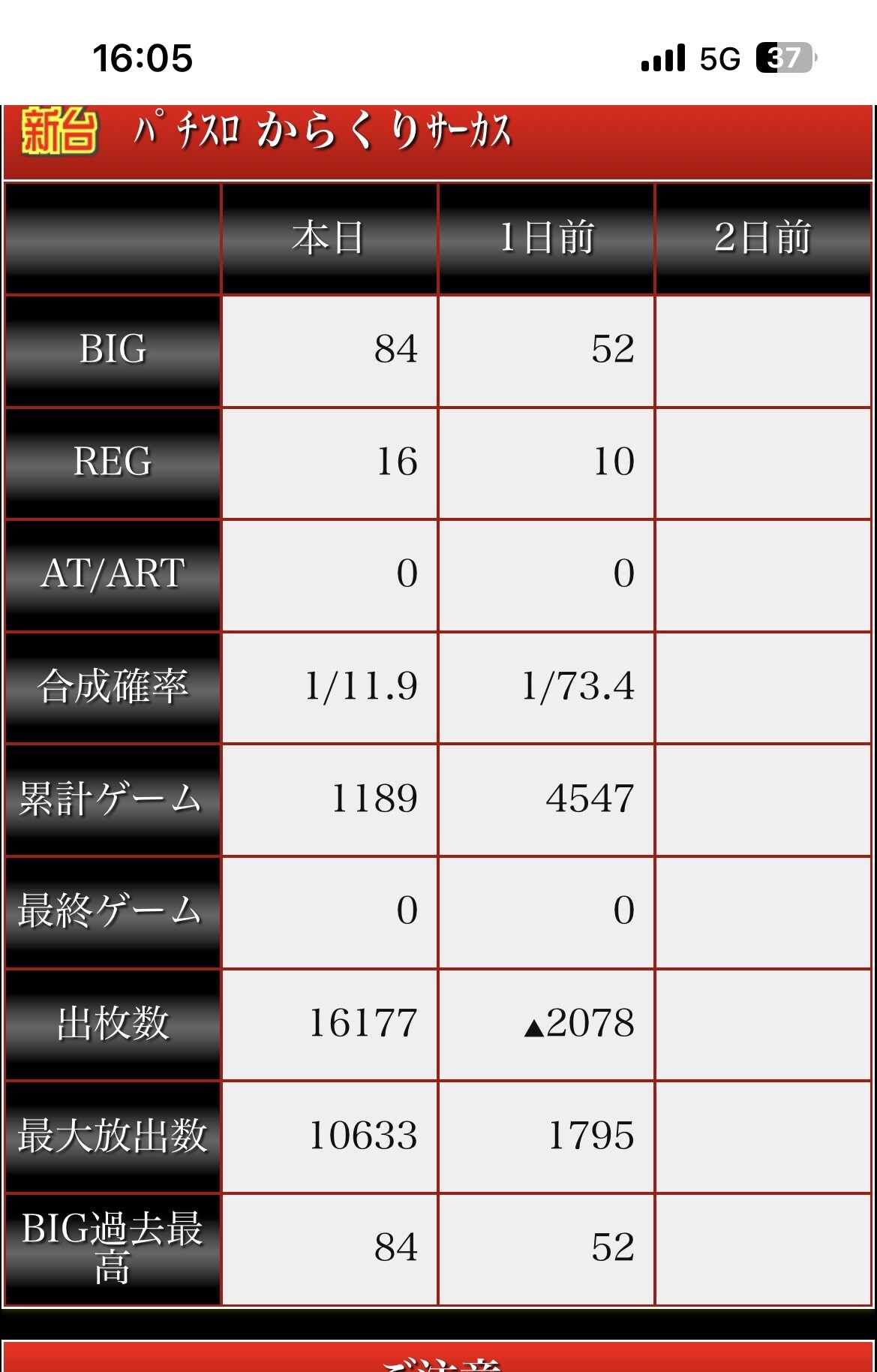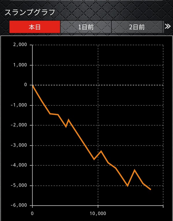 ひたすら下位のATが続いて、2200枚、2000枚、1800枚と一度も上位に入らなかったわ