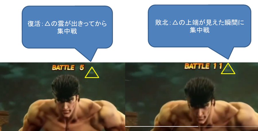 ・自力で立ち上がる時は、ケンシロウ画面の集中線が遅れて出現する。 pic.twitter.com/ymGpUjdG89
