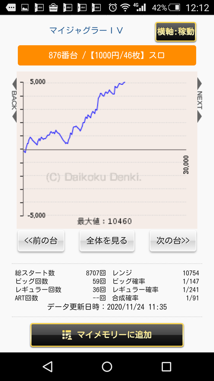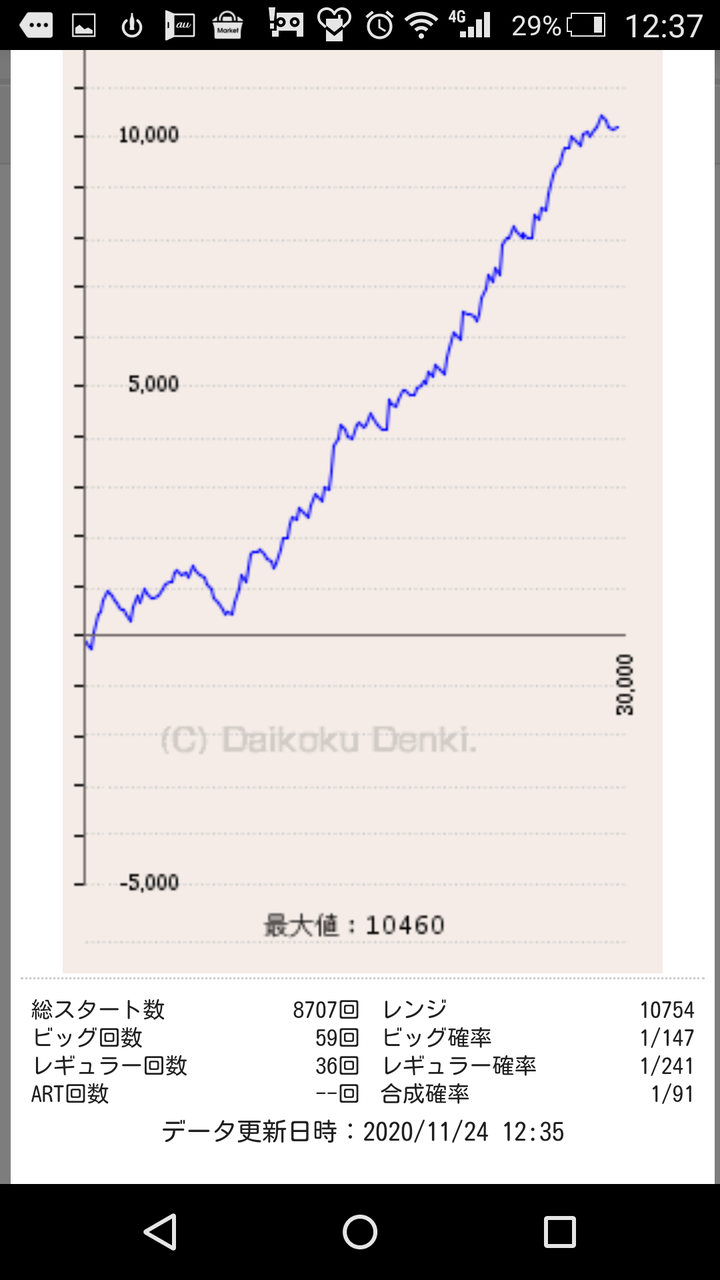 ちなみに近くのよく行く店はBB32回、RB28回とかでも差枚1800とかだったりするから長時間だとブドウの差が出るな…