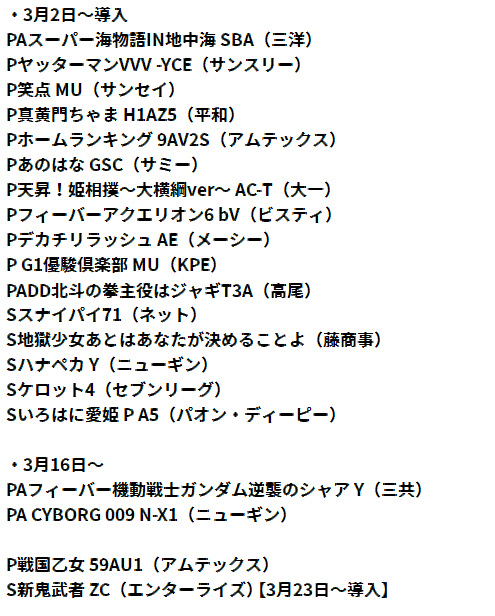 ( ・ω・)っ【3月導入予定機種たち】 https://t.co/Yqey2dbeKZ